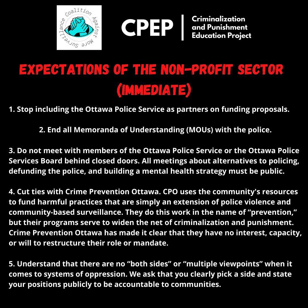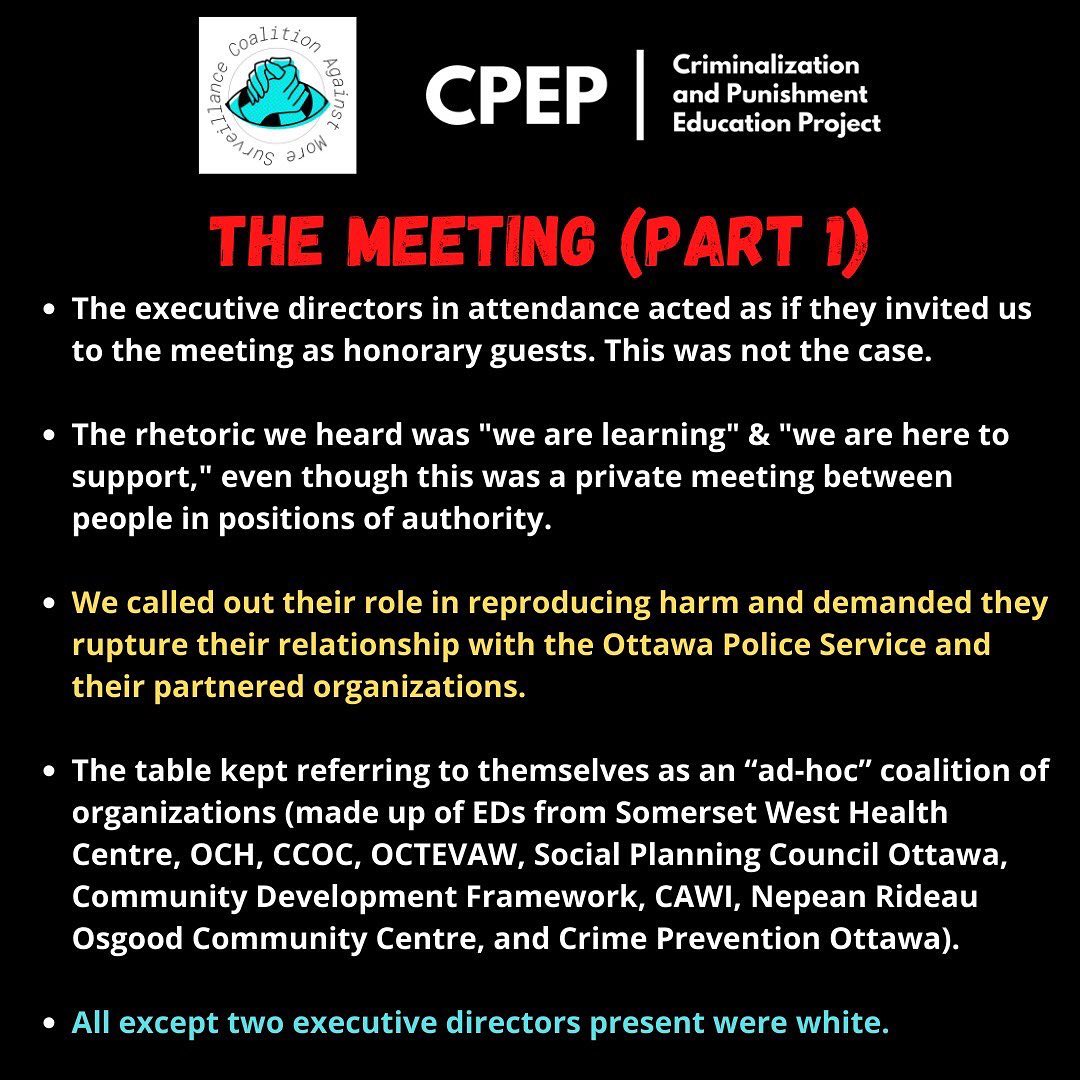 Non-profits in so-called Ottawa have been holding private meetings and co-opting the calls for alternatives to police. Closed door meetings to discuss collaborations with cops and speak for the community without them knowing or being present, is not abolitionist praxis.
